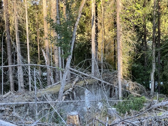 Også en større skytterbane med hold på 200, 300 og 600 meter. Betongrester etter murene der skivene var plassert og godt synlig langs elva.