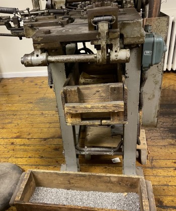 Ovenfor: En maskin som lagde små hekter. Spesiallaget maskin til denne produksjonen. Alt som hadde utspring fra ståltråd ble til tusenvis av forskjellige produkter.