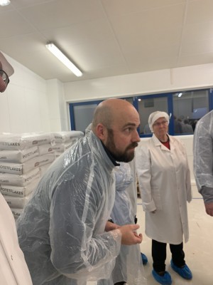 Utseende på poteten har ingen betydning, fikk vi vite, mens potetens stivelsesinnhold er viktig. Potetene blir sortert av leverandørene før levering til bedriften. Vaskeprosessen er nøye, før poteten går til koking og maling, der potetskallet blir fjernet. Potetene er blitt til mos.