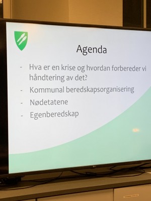 Kommunen er pålagt å ha beredskapsøvelser hvert år. Informasjon og kommunikasjon til befolkningen: Lytt på radio, sjekk mobilen. Et nytt statlig varslingssystem til hele befolkningen vil være på plass i løpet av dette året.