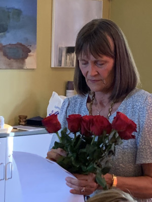 Det ble servert reker og vin/mineralvann, alt godt forberedt av Kirsten. Underveis overrakte Wenche en rose til styremedlemmer og komiteledere som takk for samarbeidet.