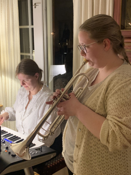 Med piano- og tropetspill, bidro Anne Kari Sivesind og datteren Stine Elise Sivesind Åmot med musikkinnslag. President Henning imponerte også med innslag i musikken.