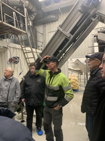 Jøran Narum tok oss deretter med inn i produksjonshallene, og viste med stor innlevelse hvordan hele prosessen foregår fra produsentens traktorlass til ferdig skrellet pakkede produkt. En imponerende produksjonslinje.