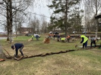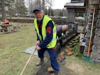 , gjerdet reparert og beiset der dette trengtes. lyskastere skal skape ekstra trivsel i parken og grøft til ledning ble gravd. Bord med krakker ble forberedt til oljing.Vi ønsker god sommer og minner om at Rotary-.grillen stå klar til bruk. Legg turen til parken.
